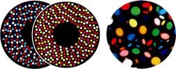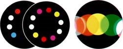 The wheels are used in pairs in a projector. They counter rotate close to each other to create a spectacular flickering matrix of colour and movement. A total of 45 different effects can be produced.